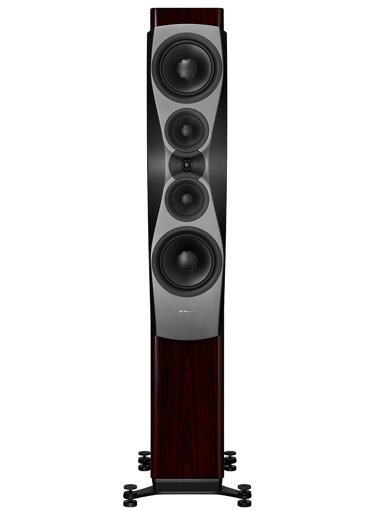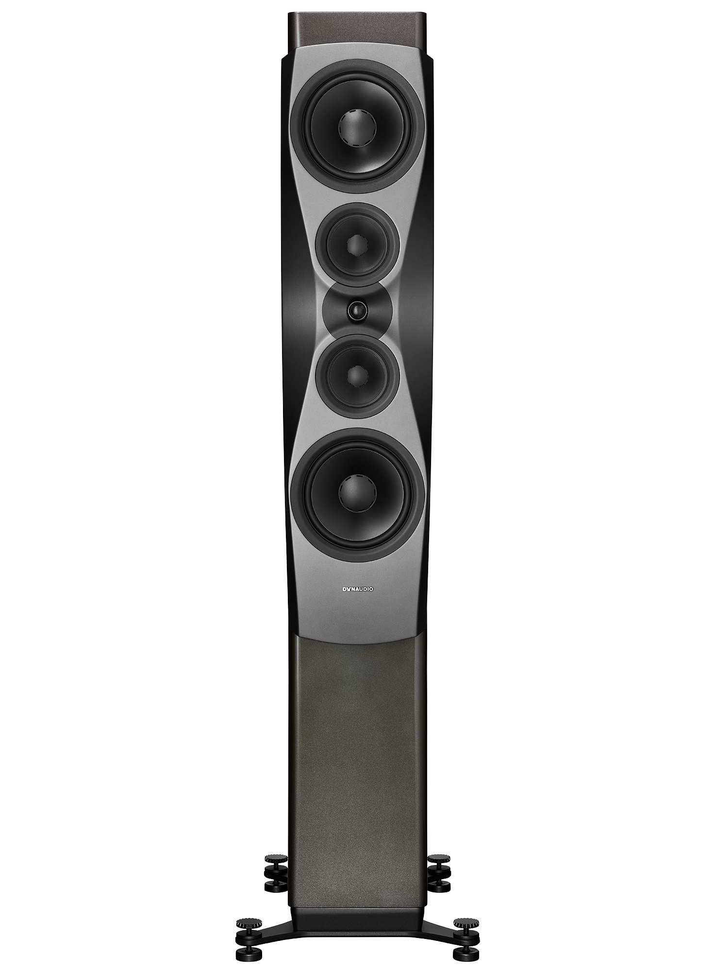 La vedette du spectacle est le DDC Lens, un guide d’onde en aluminium usiné intégré dans le baffle en composite Compex. Cette pièce ingénieuse (le résultat de centaines d’heures de simulations, de prototypage et de tests d’écoute) fonctionne conjointement avec la forme du baffle, le tweeter, les haut-parleurs médiums (notez la suspension de cône Horizon Surround qui fait également partie du système) et les woofers pour focaliser les ondes sonores exactement où elles doivent aller : vers vous.